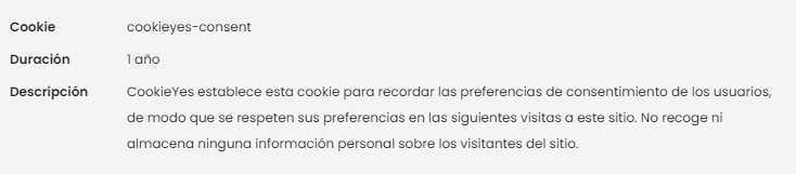 • Información sobre los periodos de conservación: Cada servicio establece sus propios periodos de conservación de las cookies y quedan reflejados en el cuadro de cookies
