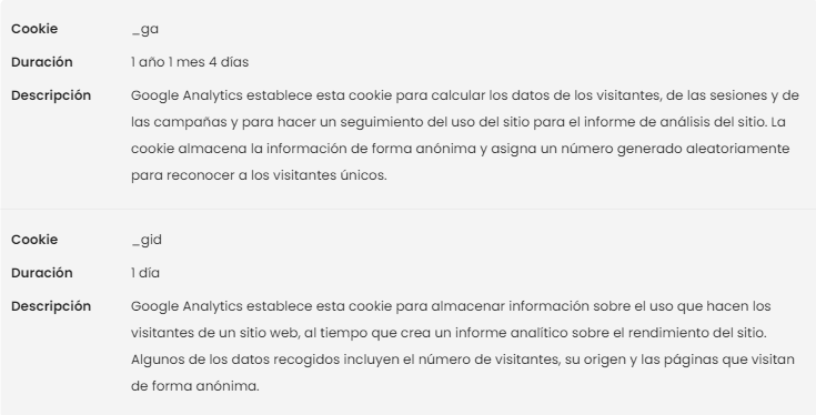 COOKIES UTILIZADAS EN ESTE SITIO WEB